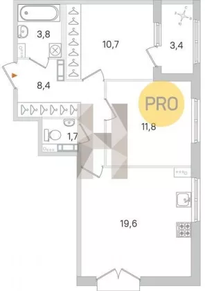 | Площадь кухни, кв.м. | 19.6 |
