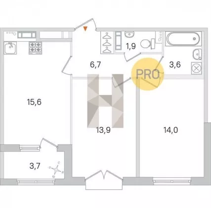 | Площадь кухни, кв.м. | 15.6 |