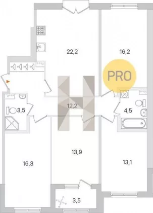 | Площадь кухни, кв.м. | 22.2 |