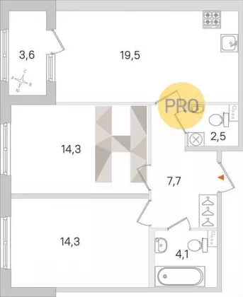 | Площадь кухни, кв.м. | 19.5 |