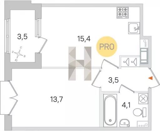 | Площадь кухни, кв.м. | 15.4 |