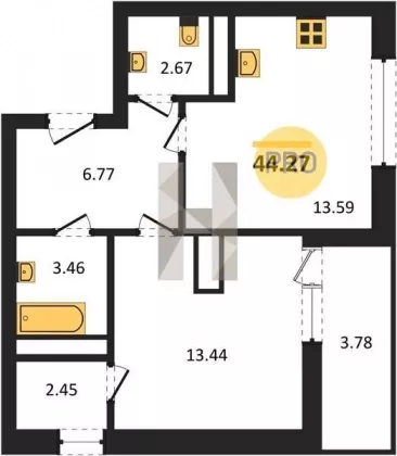 | Площадь, кв.м. | 44.27 |