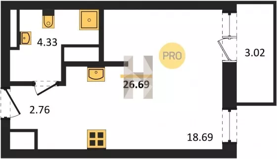 | Площадь, кв.м. | 26.69 |