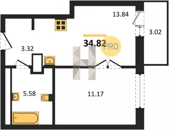| Площадь, кв.м. | 34.82 |