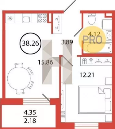 Квартира: 1 к 38,26 кв.м., 12 этаж в комплексе Энфилд, 1 очередь, корп.17, сдача: 3кв. , этажей: 12, адрес Бугры п., /17, Застройщик: Arsenal.