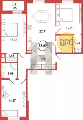 | Площадь, кв.м. | 88.69 |