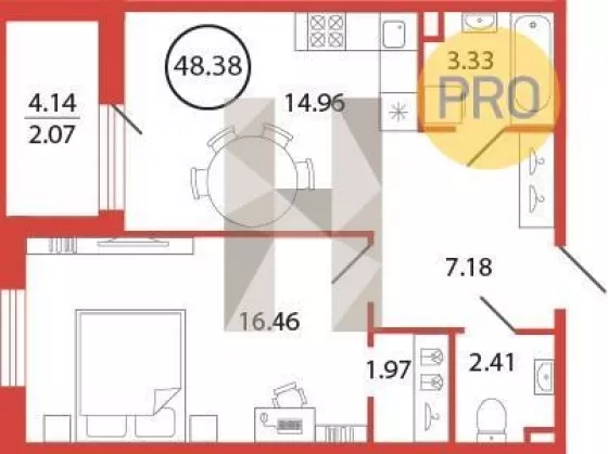 Квартира: 1 к 48,38 кв.м., 12 этаж в комплексе Энфилд, 1 очередь, корп.17, сдача: 3кв. , этажей: 12, адрес Бугры п., /17, Застройщик: Arsenal.