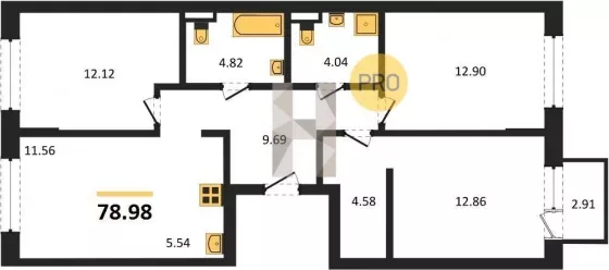 Квартира: 3 к 78,98 кв.м., 12 этаж в комплексе Живи! В Рыбацком, 6 очередь, корп.21, сдача: 4кв. , этажей: 24, адрес Советский пр., , Застройщик: Группа Самолет.