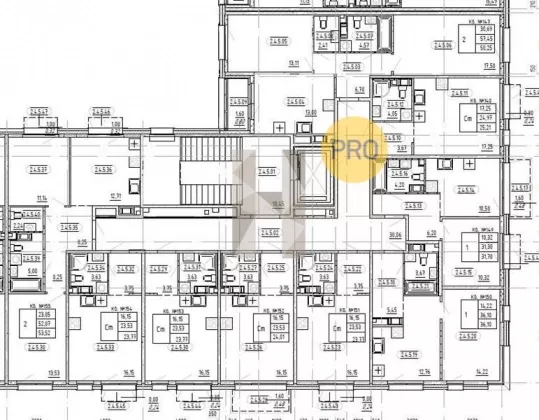 Межквартирные коридоры на этажах: при большом количестве квартир на 1 лестничной клетке, межквартирный коридор делится на 2 части. Спуск лифтов в подземные паркинги (при наличии подземного паркинга).