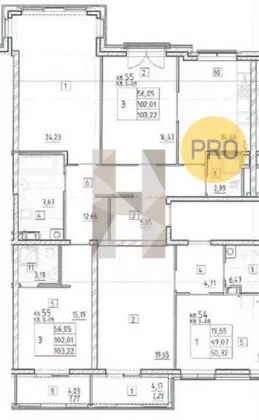 Квартира: 3 к 103,22 кв.м., 5 этаж в комплексе BAKUNINA, 33, 1 очередь, корп.1, сдача: 1кв. , этажей: 9, адрес Бакунина пр., д. 33/А, Застройщик: ПСК.