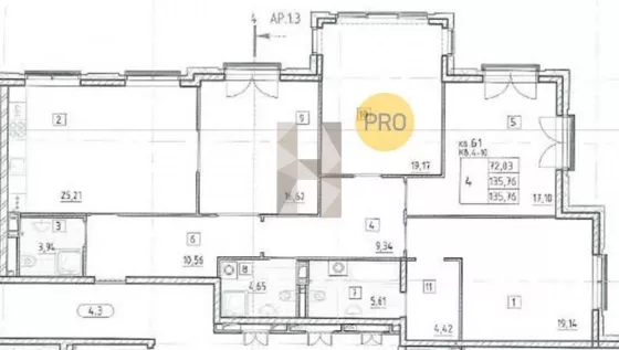 Квартира: 4 к 135,76 кв.м., 4 этаж в комплексе BAKUNINA, 33, 1 очередь, корп.1, сдача: 1кв. , этажей: 9, адрес Бакунина пр., д. 33/А, Застройщик: ПСК.