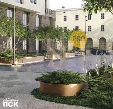 Часть дворового пространства обустраивается на кровле подземного паркинга. Технология «интенсивной зеленой крыши» создает собственный городской сад. Деревья для озеленения подбираются в балансе с масштабом окружающих зданий. Плотные посадки кустарников и многолетних растений создают «зеленый эффект» уже в первый год.