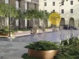 Закрытый внутренний двор со сквером и детской площадкой. Острова зелени с водной чашей в центре создают ощущение гармонии и умиротворения. Современная уличная мебель и освещение формируют домашнюю атмосферу уюта и представляют двор как дополнительное частное пространство для жизни.