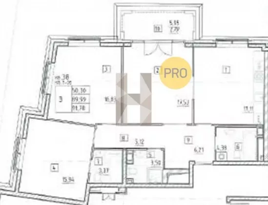 Квартира: 3 к 91,78 кв.м., 7 этаж в комплексе BAKUNINA, 33, 1 очередь, корп.1, сдача: 1кв. , этажей: 9, адрес Бакунина пр., д. 33/А, Застройщик: ПСК.