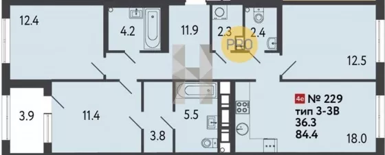 Квартира: 3 к 84,40 кв.м., 3 этаж в комплексе Струны, 1 очередь, корп.2, сдача: 4кв. , этажей: 15, адрес Шостаковича ул., , Застройщик: RBI.