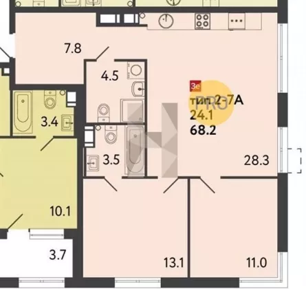 Название ЖК Струны Площадь, кв.м. 68.2 Жилая площадь 24.1 Площадь кухни, кв.м. 28.3 Комнат в квартире 2 Этаж 7 Этажность 23 Материал стен Монолитный Ремонт Предчистовая