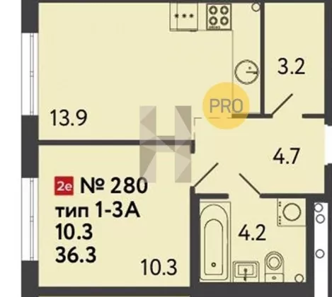 | Площадь, кв.м. | 36.3 |