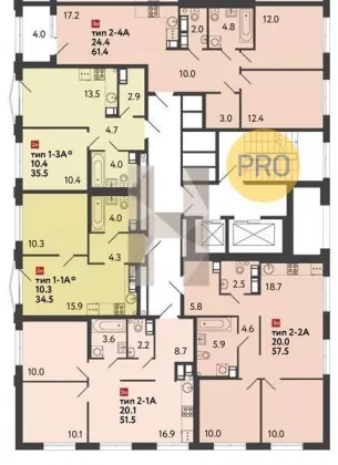 Всего в доме 1 137 квартир (в двух очередях). В большинстве из них перегородки не являются несущими элементами, поэтому после получения ключей и необходимых согласований можно будет сделать перепланировку. В каждом корпусе квартир немного: от 110 до 167. А на этаже — от 4 до 8 квартир, в зависимости от корпуса.