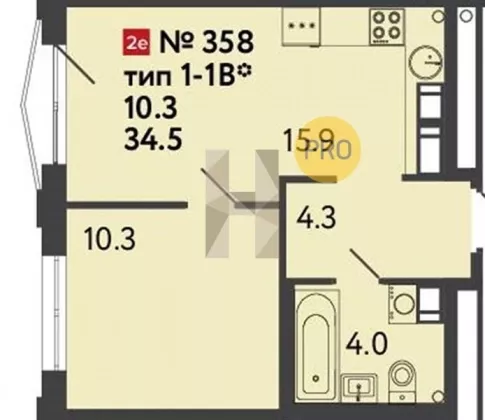 Квартира: 1 к 34,50 кв.м., 3 этаж в комплексе Струны, 1 очередь, корп.3, сдача: 4кв. , этажей: 16, адрес Шостаковича ул., , Застройщик: RBI.