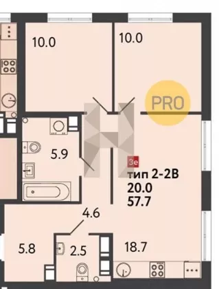 Квартира: 2 к 57,50 кв.м., 14 этаж в комплексе Струны, 1 очередь, корп.3, сдача: 4кв. , этажей: 16, адрес Шостаковича ул., , Застройщик: RBI.