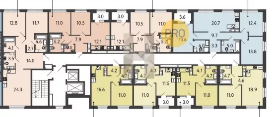 Всего в доме 584 квартиры, от 23 до 126 квартир в каждой секции. Среди них классические и европланировки. Из квартир с балконами и французскими балконами открывается вид на живописный двор с собственным пейзажным парком.