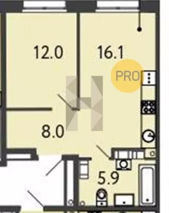 | Площадь кухни, кв.м. | 16.1 |