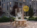 Внутреннее пространство двора закрыто от внешнего мира. Двор располагается на стилобате, на уровне второго этажа, и охраняется круглосуточно. Попасть сюда можно только при наличии электронного ключа или по приглашению. Пейзажный парк, живописный ручей, уединенные пространства с лежаками, спортивные зоны, качели и огромные песочницы. В тихих уголках двора, можно и отдохнуть, и поработать.