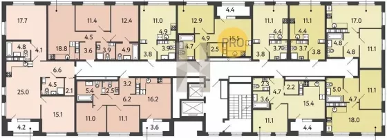 Всего в доме 584 квартиры, от 23 до 126 квартир в каждой секции. Среди них классические и европланировки. Из квартир с балконами и французскими балконами открывается вид на живописный двор с собственным пейзажным парком.