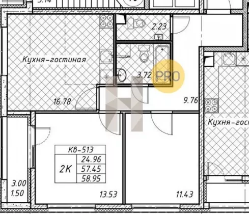 Название ЖК Академик Площадь, кв.м. 58.95 Жилая площадь 24.96 Площадь кухни, кв.м. 16.78 Комнат в квартире 2 Этаж 1 Этажность 12 Материал стен Монолитный Ремонт Предчистовая