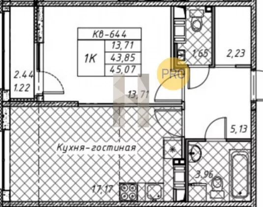 | Площадь, кв.м. | 45.07 |