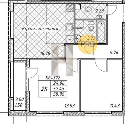 | Площадь, кв.м. | 58.95 |