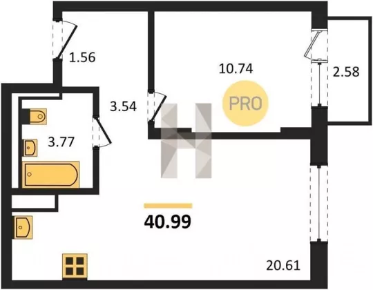 | Площадь, кв.м. | 40.99 |