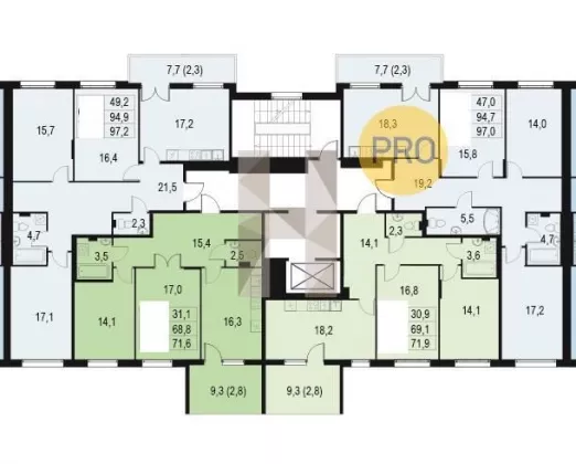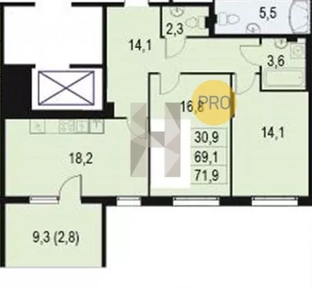 Квартира: 2 к 71,90 кв.м., 3 этаж в комплексе Riviera club, 1 очередь, корп.1, сдача: 4кв. , этажей: 4, адрес Патриотов пр., , Застройщик: Балтийская жемчужина.