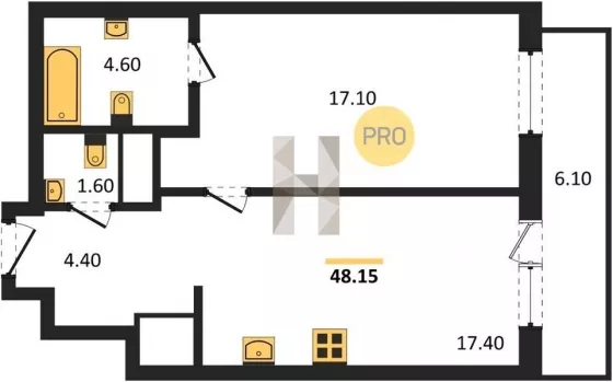 Название ЖК OKLA Площадь, кв.м. 48 Жилая площадь 17.1 Площадь кухни, кв.м. 17.4 Комнат в квартире 1 Этаж 16 Этажность 25 Материал стен Кирпич Ремонт Черновая отделка