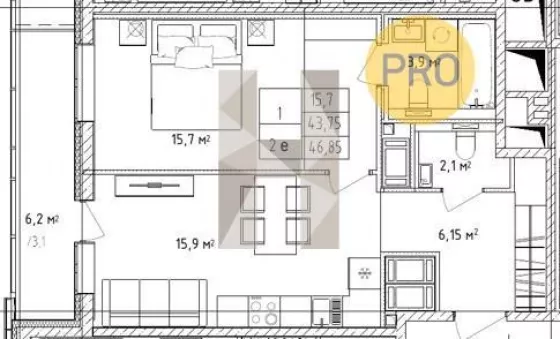 Название ЖК OKLA Площадь, кв.м. 46.85 Жилая площадь 15.7 Площадь кухни, кв.м. 15.9 Комнат в квартире 1 Этаж 25 Этажность 25 Материал стен Кирпич Ремонт Черновая отделка