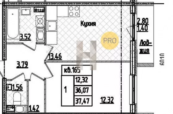 Квартира: 1 к 37,47 кв.м., 7 этаж в комплексе Кинопарк, 1 очередь, корп.2, сдача: 2кв. , этажей: 9, адрес Тамбасова ул., д. 5, Застройщик: РосСтройИнвест.