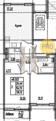 | Площадь кухни, кв.м. | 17.32 |