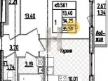 Квартира: 1 к 35,59 кв.м., 3 этаж в комплексе Кинопарк, 1 очередь, корп.2, сдача: 2кв. , этажей: 9, адрес Тамбасова ул., д. 5, Застройщик: РосСтройИнвест.