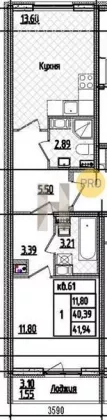 Квартира: 1 к 41,94 кв.м., 3 этаж в комплексе Кинопарк, 1 очередь, корп.2, сдача: 2кв. , этажей: 9, адрес Тамбасова ул., д. 5, Застройщик: РосСтройИнвест.