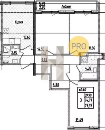 | Площадь, кв.м. | 77.57 |