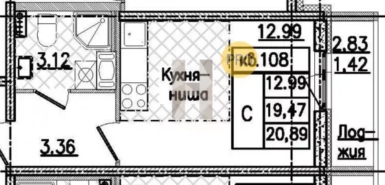 Студия: 20,89 кв.м., 6 этаж в комплексе Кинопарк, 1 очередь, корп.2, сдача: 2кв. , этажей: 9, адрес Тамбасова ул., д. 5, Застройщик: РосСтройИнвест.