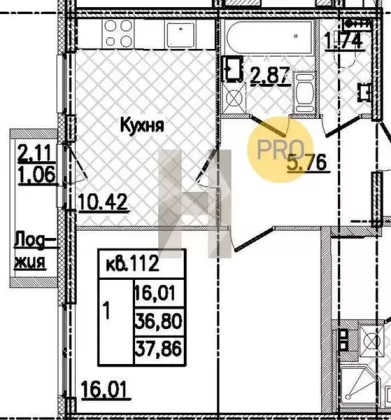 | Площадь кухни, кв.м. | 10.42 |