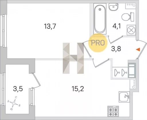 | Площадь кухни, кв.м. | 15.2 |