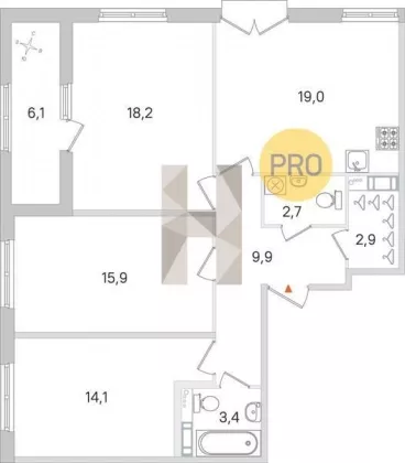 | Площадь кухни, кв.м. | 19 |