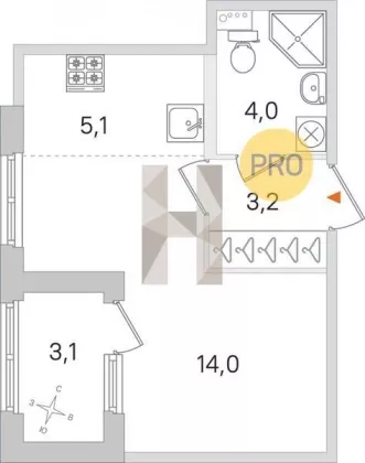| Жилая площадь | 14 |