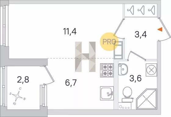 | Площадь кухни, кв.м. | 6.7 |