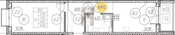 Название ЖК RESPECT Площадь, кв.м. 42.61 Жилая площадь 15.78 Площадь кухни, кв.м. 12.9 Комнат в квартире 1 Этаж 10 Этажность 13 Материал стен Экспериментальные материалы Ремонт Чистовая