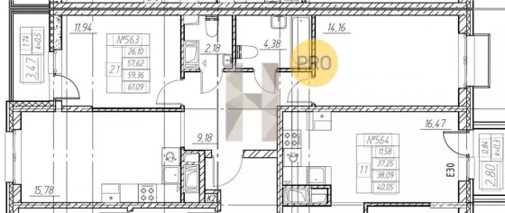 Квартира: 2 к 59,36 кв.м., 7 этаж в комплексе RESPECT, 1 очередь, корп.2.3, сдача: 1кв. , этажей: 13, адрес Полюстровский пр., , Застройщик: ПСК.