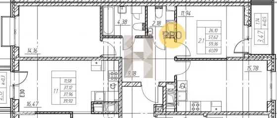 Квартира: 2 к 59,36 кв.м., 4 этаж в комплексе RESPECT, 1 очередь, корп.2.3, сдача: 1кв. , этажей: 13, адрес Полюстровский пр., , Застройщик: ПСК.