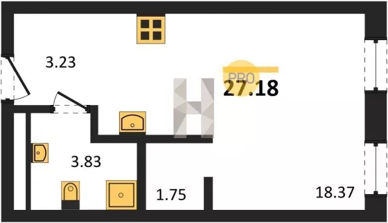 Студия: 27,18 кв.м., 1 этаж в комплексе ID Murino 3, 2 очередь, корп.1, сдача: 4кв. , этажей: 12, адрес Муринское г.п., , Застройщик: Euroinvest Development.